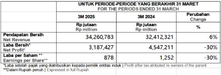 • Rp 2,9 triliun dari segmen pertambangan emas dan mineral lainnya, 61 persen lebih tinggi dari triwulan pertama tahun 2024.